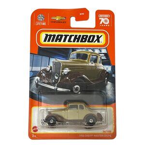 Bring vintage charm to your diecast collection with this 2024 Matchbox 1934 Chevy Master Coupe. Featuring a two-tone brown and beige finish, this officially licensed GM model is #34 of 100 in the mainline and packaged on a 70th Anniversary Matchbox card. A nostalgic and classy piece for collectors and fans of classic American cars.