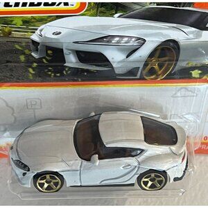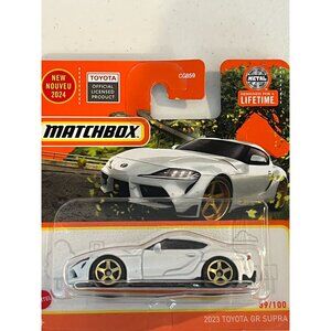 This 2023 Matchbox Toyota GR Supra short card edition (39/100) comes in a sleek white finish with gold wheels, bringing modern JDM style to your diecast collection. Officially licensed by Toyota, this 1:64 scale car is new in package and part of the 2024 Matchbox lineup. A must-have for Supra fans, collectors, and JDM enthusiasts.