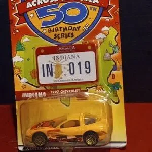 new in package 2001 Mattel across America 50 th birthday series Indiana with plate in/019 1997 Chevrolet Corvette yellow check it out thank you