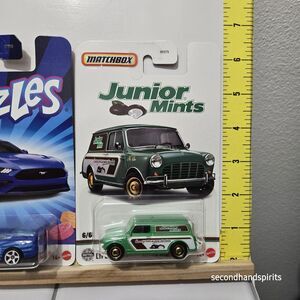 The Matchbox Candy Cars Limited Edition Junior Mints Razzles And Dots is a diecast toy vehicle set from Mattel featuring a unique candy-themed design. This limited edition collection includes cars modeled after Junior Mints, Razzles, and Dots candies, making it a fun and nostalgic addition to any toy car collection. Each car is intricately detailed and made of sturdy diecast material, ensuring durability for hours of imaginative play. Ideal for young car enthusiasts and collectors alike, these candy-inspired cars offer a playful twist on traditional toy vehicles.