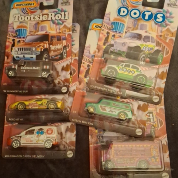 Matchbox Car Set The Candy Bar Collection 1-6 Tootie Roll, Dots, Tootie Pop, Junior Mints, Sugar Daddy, Charms.
