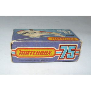 Add a vintage flair to your collection with this classic Matchbox Superfast No.75 Rescue Helicopter. Made from high-quality diecast material, this white helicopter boasts a 1976 manufacture year. A perfect addition for any toy vehicle enthusiast, this collectible piece is in mint condition and ready to be showcased. Don't miss out on the chance to own a piece of toy history. Box has some damage.