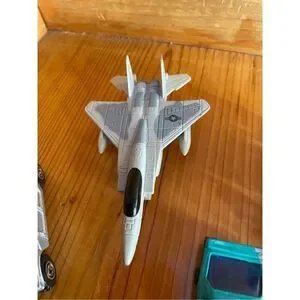 2 cars, one motorcycle, one fighter jet, one humvee