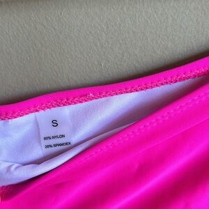Details-Hot Pink, Padded top, top is ribbed with ruffled edges, high waisted bottoms