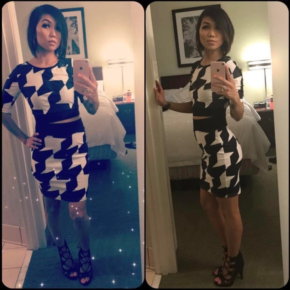 Matching Blk/Wht Top & Skirt; hole design on the back of top; worn once for my birthday; Size S