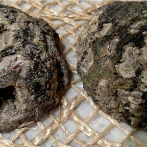 SET/2 Matching Blue Agate Polished Geode Halves, 3" Diameter x 1.25" Deep, EUC. **NO Chips or Scratches, but what looks like one tiny hairline fracture on each side; PLEASE SEE Pictures** This is a set of very shiny polished, what looks like, natural bluish grey agate, but I'm not 100% sure. They would look good displayed on a small wood riser or a small plate or used for paperweight. Shipped with USPS Mail.