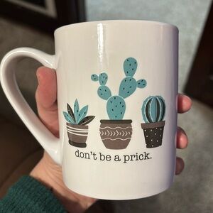 Blue & grey cactus in grey pots says, “don’t be a prick.”