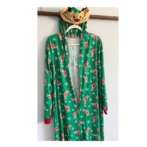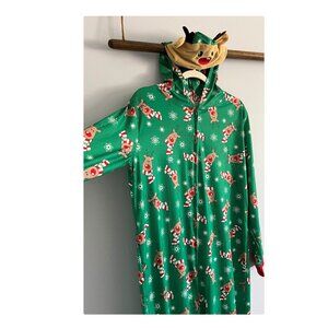Matching Family Pajamas Reindeer Antler Zipper Onesie GREEN SZ M / DAD NWT