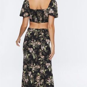 Matching Floral Maxi Skirt And Crop Top Set In Black Size L