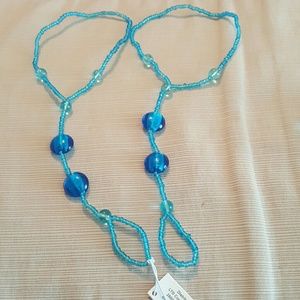 Beautiful Aqua Blue Colored Beaded Foot Jewelry and Sparking Bracelet. Foot Jewelry fits around ankle, over foot and around toe. Both have stretch to fit any size feet or wrist. Both are New.