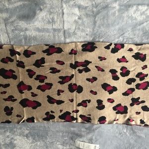Infinity Scarf and Beanie Hat. Tan w/Black and Dark Pink Animal Print. Rayon/Nylon blend. One size. Infinity Scarf appts 56". (Original $ Scarf $59.50 and Hat $49.50)
