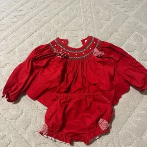 Adorable red kids matching set perfect for any occasion. Features a charming design with intricate detailing. Comfortable and stylish for your little one.