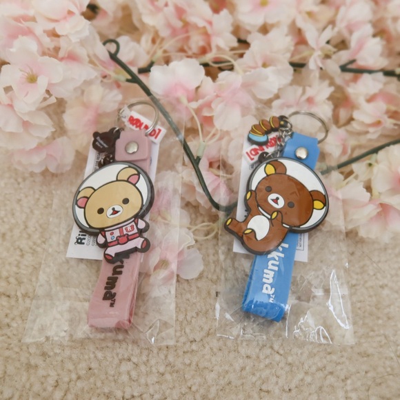 Couple’s Matching Rilakkuma Space Keychains, Round 1 Exclusive, NWT, helmets on like astronauts, his and hers