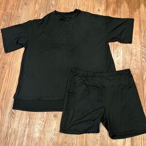 Bought these off tik tok shop. They are soft & very comfy! The tops are tunic length, also longer in the back than the front. The shorts have a pocket on the right thigh too.