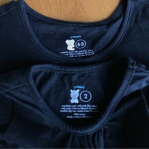 Pair of primary short sleeved dresses in black. One is size 2 and the other is size 4-5. Have pockets! Both are in good used condition, but the 4-5 was worn more and has minor wash wear. The dresses don’t photograph great. Thank you for looking! I am an active seller who ships quickly :).