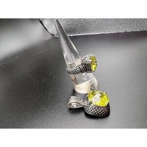 Premier Designs matching ring and pendant. Large lemon-lime stone. Crosshatch pattern on the setting of the stone.