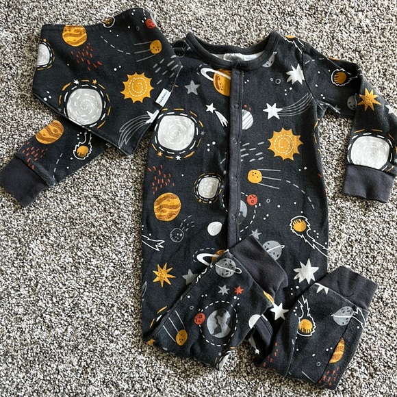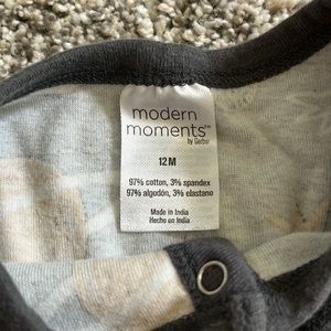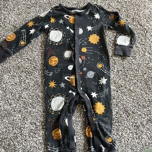 Adorable matching set! Comes with the footless onsie / romper and matching bib. Size 12m. Super soft and stretchy! Perfect condition with such a fun space pattern! Modern moments by Gerber.