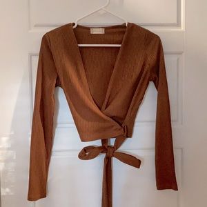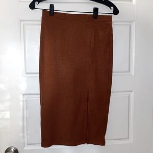 Amber tye top with matching pencil skirt, flattering slit.