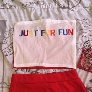 Tube top with shorts. Brand new- never worn- in perfect condition.