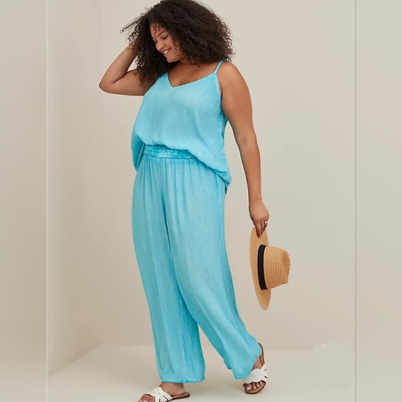 cropped Tank and Pants. A stunning Turquoise Was Guaze Set. Absolutely beautiful color you will love this set.