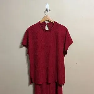SHEIN Crimson Red Unity Lettuce Trim Shirt and Wide Leg Pants Set