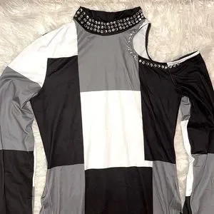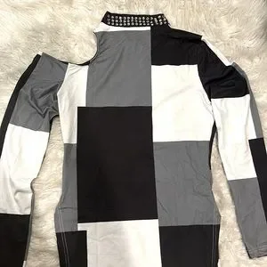 Long sleeve with cut-out shoulder and rhinestones