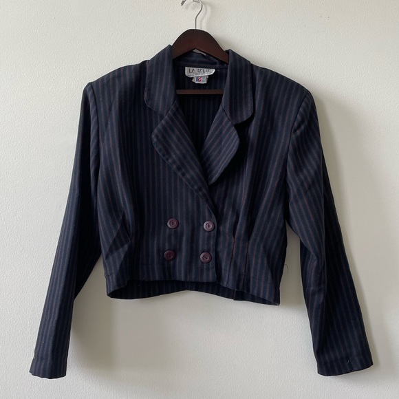 Women’s matching set, blazer and skirt, navy with red pin-stripes - both size 13