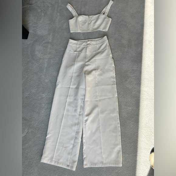 Cute matching pant & crop top set. The top is a small and bottoms are a medium. The bottoms run small.