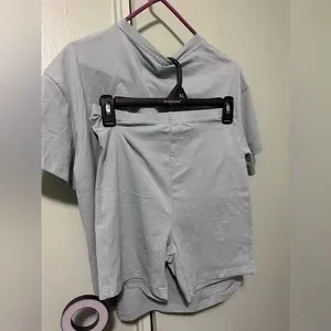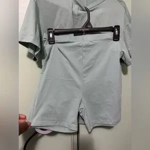 This sea foam green matching set is adorable and comfortable. Comes with T-shirt and matching bike shorts. So cute for spring or summer.