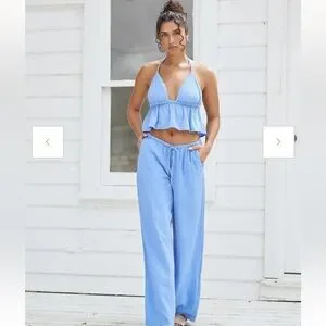 Stylish and comfortable blue halter jumpsuit perfect for any occasion. Enjoy a relaxed fit with a chic design.
