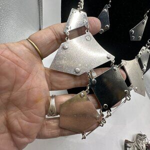 Matching Set Geometric SilverTone Metal Bib Necklace Earrings Chain 16” 3.5”ext