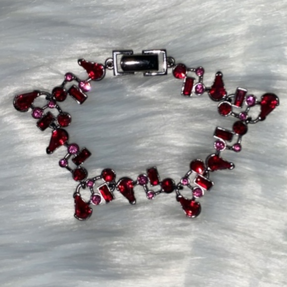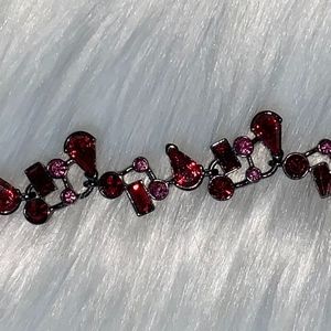 Purple and Pink Jeweled Costume Bracelet 7.5" long