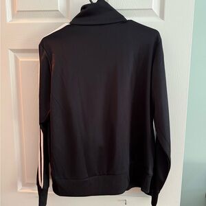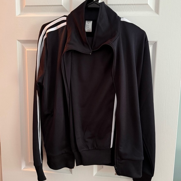 Stylish black jacket with white stripes and matching pants. Comfortable and trendy. Perfect for kids.