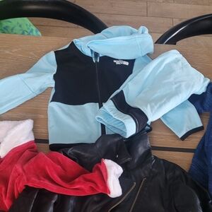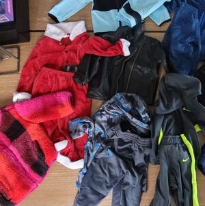 Bundle of Nike and other brand kids clothing in various colors. Includes jackets, hoodies, and pants. Perfect for active kids.