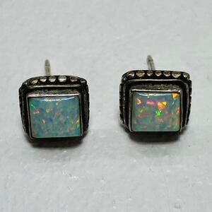 Matching Sterling Silver Opal Stud Earrings and Charm