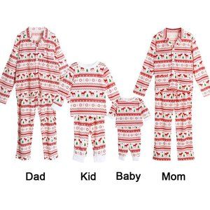 New matching Christmas PJs for the family. Striped, with winter themes like Christmas trees and reindeer.
