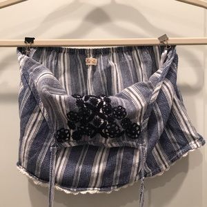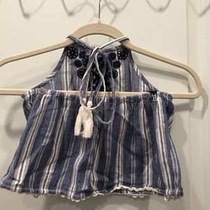 Tassel crop top ties at the neck and structure tap shorts with a zippered side. If interested items can be sold separately, feel free to ask. In great condition, only worn once.