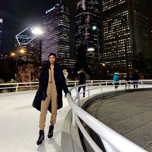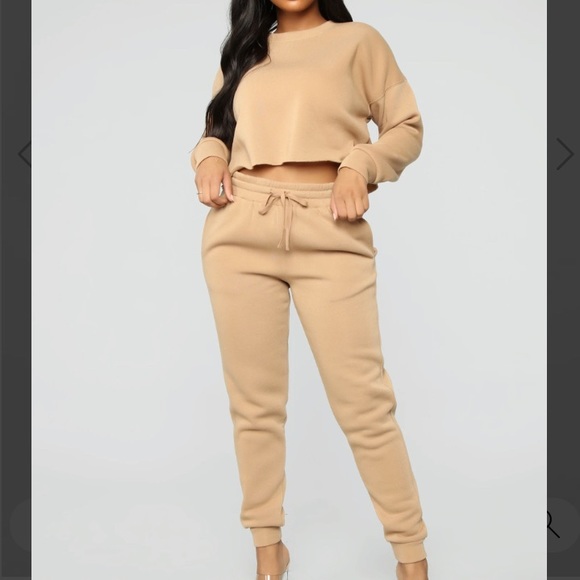 Cute mocha colored sweat pants and cropped sweatshirt are comfy and perfect for chilling at home or going out! Does have some piling, but fine other than that.