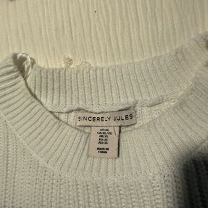 Blue and white sweater and shorts set. Small pull on sweater (please see pic) but besides that good condition.