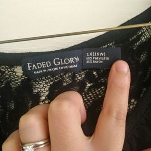 These are both the same, just different colors. Good used condition. More of a v-neck style. Cute floral lace detail on the top on the back of the shirt. 3/4 length sleeves. Price is for both. Tag says 16W in parenthesis. Feel free to ask questions!!