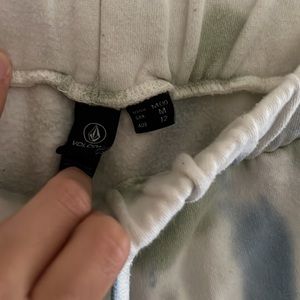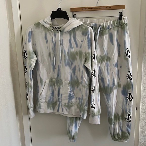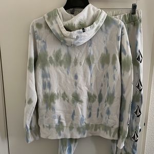 Matching tie-dye set Volcom set sweatshirt is a size small sweatpants are a size medium sweatpants runs small and they are on the shorter side