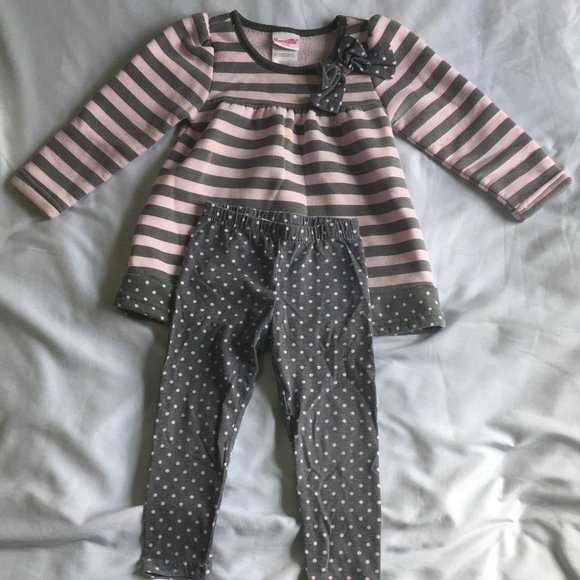 Striped grey and pink shirt with matching leggings