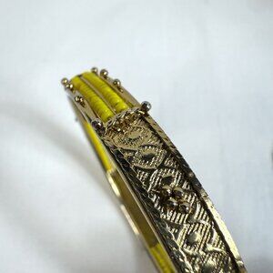Matching Yellow Beaded Bangle Bracelets Gold Tone Accents 2.5" Diameter