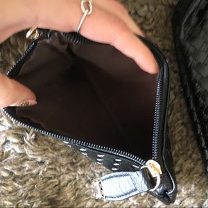 Absolutely stunning purse with matching inside purse accessories. These came together as a set from a boutique. Never used. Unfortunately my kids are 2 and 4 and wild so happened to get sparkly nail polish on bottom of purse. It really does not take away from purse and I'm pretty good at getting things out 😘. Brand new condition (except for mishap 😒)