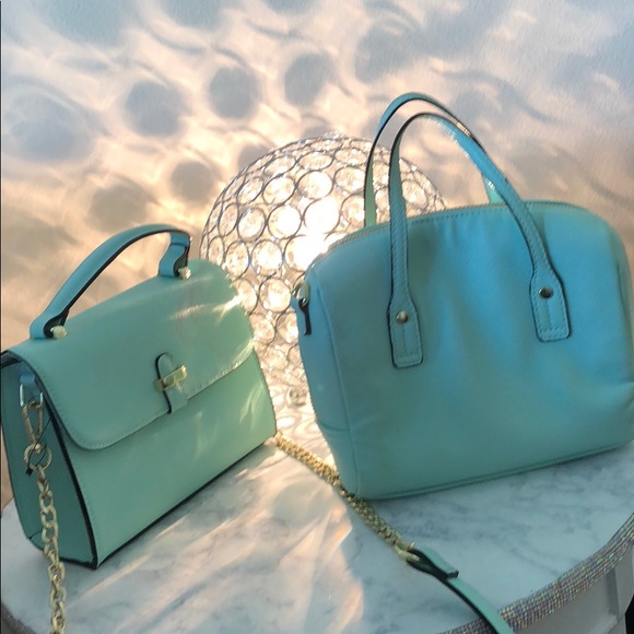 Cute, matching blue mini purses! Box clutch has a red stain on it but the other is in great condition!
