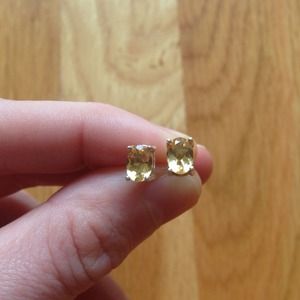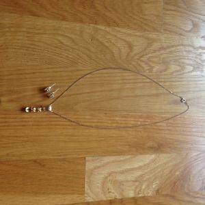Silver with yellow stones, 3 tiered stones on necklace, 18" length, oval stones on earrings