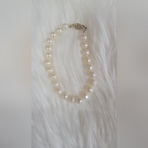 Matching pearl necklace and bracelet set gold filled clasp