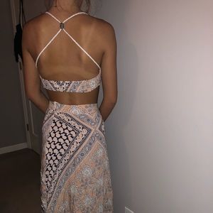 A printed beachy set zipper skirt with tie belt and and comes with a matching bralette