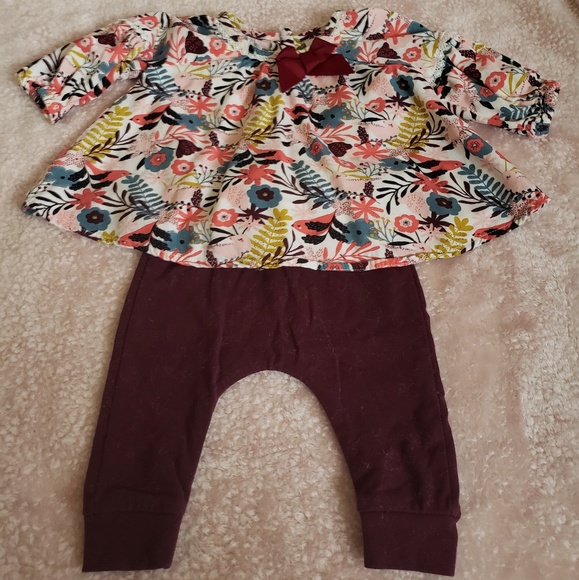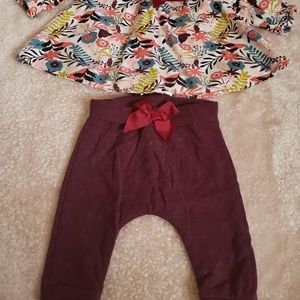 Super cute multicolored top with burgundy pants. Washed, never worn.