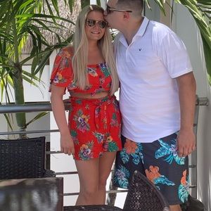 Perfect condition! Worn once for vacation. Top size large and bottoms size medium. Top fits more like a medium. Just using Mumu for exposure. Bought from a boutique